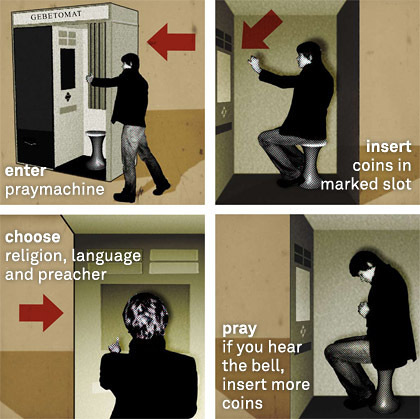 Über 300 Gebete aus den fünf Weltreligionen Christentum, Islam, Buddhismus, Hinduismus und Judentum sowie zahlreicheren kleineren Glaubensrichtungen und Freikirchen hat der Berliner Künstler und Regisseur Oliver Sturm gesammelt und macht sie in einem Gebet-Automaten an verschiedensten Orten im öffentlichen Raum zugänglich. Entstanden ist ein Rückzugsort in der „kleinsten Form des spirituellen Raums“ (Oliver Sturm), der die Intimität des Gebetes mit automatisierter Welt kollidieren lässt. Im Advent 2015 ist er nach Stationen wie den Berliner Sophiensälen, ZKM Karlsruhe oder Künstlerhaus Mousonturm Frankfurt im Foyer der Karl-Franzens-Universität Graz aufgestellt.