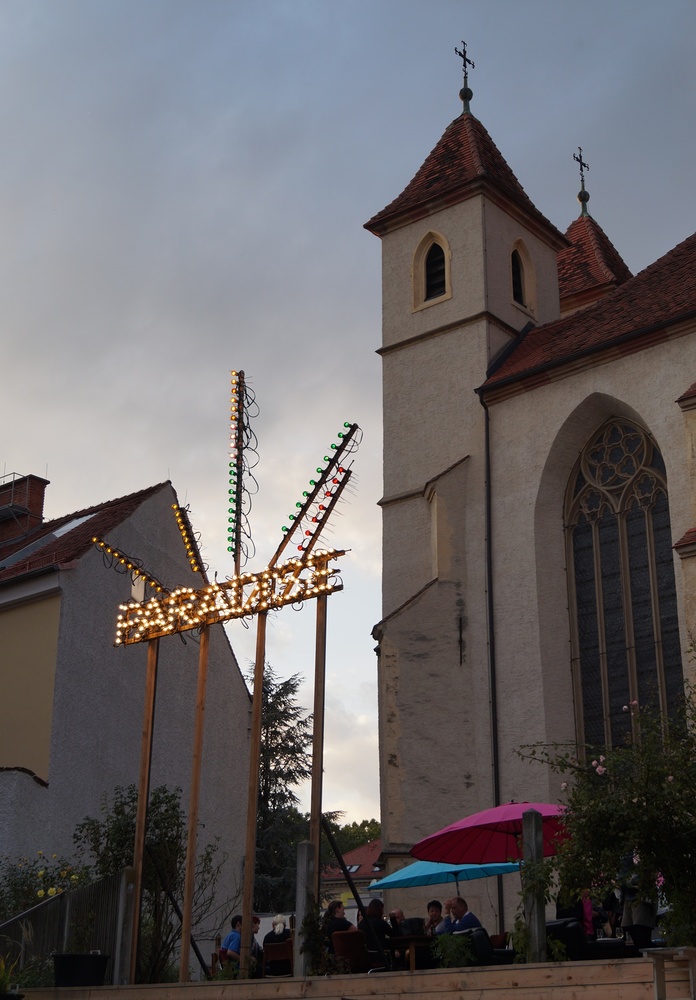 Die Eröffnung spiegelte die Fülle des ambitionierten Projekts wider: Das Künstlerinnenduo RESANITA setzte ein markantes Zeichen im Außenraum, während Jochen Höller in der Leechkirche buchstäblich mit einem Fragezeichen intervenierte. Das zugleich eröffnete Caritas-Café paul@paradise, das in Verbindung mit einem Beschäftigungsprojekt für Menschen, die am Arbeitsmarkt benachteiligt sind, Arbeitsmöglichkeiten schafft, setzte mit Re:Use-Möbeln farbige Akzente und wird in Zukunft gemeinsam mit der KHG Graz und dem AAI im Rahmen des Projekt PARADISE L. Workshops zum Upcyceln von Möbeln anbieten. Eine erste Gelegenheit bietet sich allen Interessierten bereits am 09. und 10. OKT im Rahmen der Opening-Tage „What about Paradise?“.