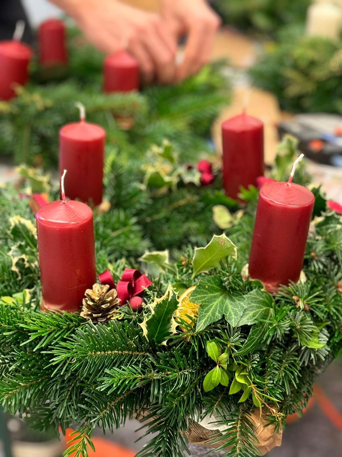 Am 2. Dezember 2023 haben wir erneut mit den Hofschneiderdirndln gemeinsam unsere Adventkränze gebunden.