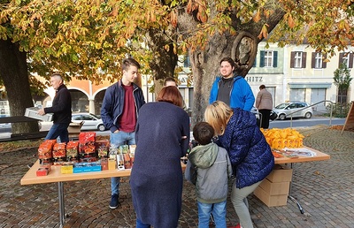 Am vorletzten Wochenende im Oktober verkauften wir nach den Messen Waren aus dem Weltladen. Der Erlös ermöglicht, dass die jungen Kirchen in den ärmsten Ländern der Welt leben und weiter wachsen können.