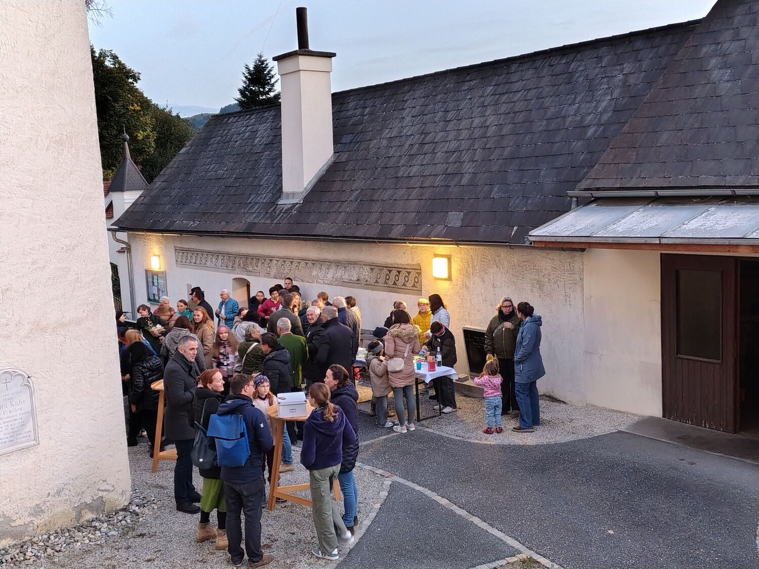 Nach der Messe versammelten sich die glücklichen, zufriedenen und dankbaren Menschen vor der Kirche zur Agape, vorbereitet von den Damen des PGR. Das war ein wunderbarer Anlass, wieder viele, langjährige Bekannte zu treffen und mit ihnen zu reden. - Ein wirklich schöner Abschluss eines arbeitsreichen Jahres.