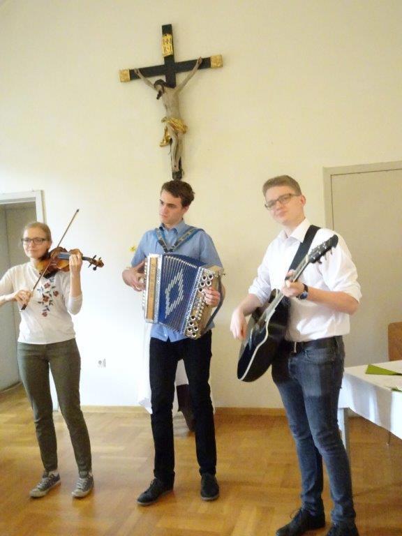Die launige Begrüßung nahm um 14.30 Uhr Hausherr Pater Simon vor. Anschließend kredenzten die Mitglieder der Katholischen Frauenbewegung köstliche Mehlspeisen und Kaffee auf. Später servierten sie leckere Brötchen, Wein und Wasser. Zwischendurch sorgte das Geschwister-Trio Zöhrer mit ihrer schönen Musik für eine tolle Stimmung. Die Anwesenden unterhielten sich bis zum frühen Abend glänzend. Die älteste Jubilarin war mit 93 Jahren Maria Trieb aus Rothleiten, ältester Gast bei den Männern war Rupert Windisch aus Gams mit 97 Jahren.
