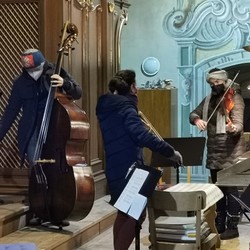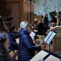 Ein Solistenquartett aus unserem Chor sowie die Geigerinnen Bernadette Schmutz und Christiane Schwab, Lukas Raumberger am Kontrabass und Miriam Ahrer an der Orgel musizierten in der heurigen Christmette.