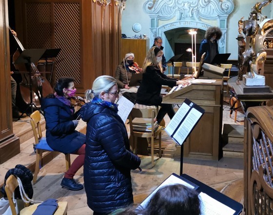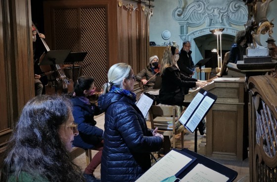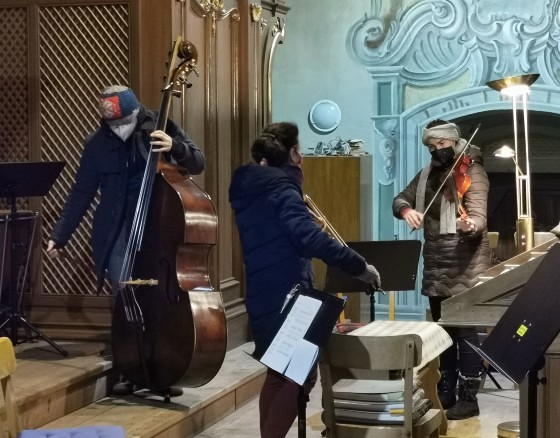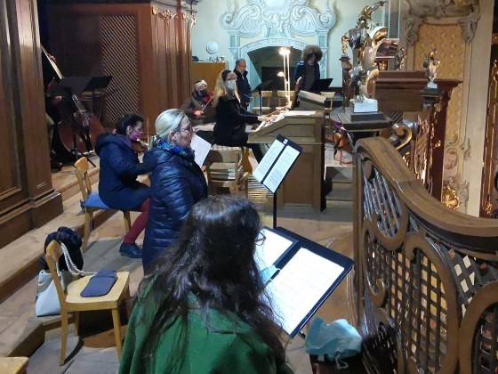Da kein Gemeindegesang erlaubt war, wurden vor allem bekannte Weihnachtslieder zur festlichen Gestaltung der Messe ausgewählt. Trotz minimaler Probenmöglichkeiten wurde es auf diese Weise eine sehr stimmungsvolle und feierliche Mette – auch das „Stille Nacht“ erklang in der kleinen Besetzung und mit Gitarrenbegleitung voller inniger Weihnachtsfreude!