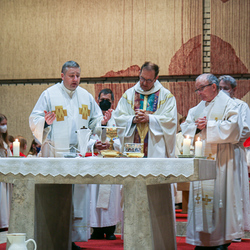 Am Gründonnerstag feierten wir eine gemeinsame Seelsorgeraum-Messe in der Pfarrkirche Lieboch. Mit dabei waren drei Priester, drei Diakone, drei Pastoralreferentinnen, über 20 Ministranten und verschiedene weitere Dienste aus unseren sechs Pfarren.