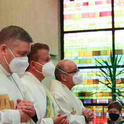 In einer etwas anders gestalteten Fußwaschung wurde jenen gedacht, die nicht oder nicht mehr am Leben der Kirche teilnehmen können oder möchten. Die Stühle blieben leer. Symbolisch für Rand- und Zielgruppen und jene Menschen, die unsere Gesellschaft mitprägen, wurden Kerzen entzündet. Als Zelebranten fungierten unsere drei Priester, drei Diakone sowie alle Pastoralreferentinnen und Referenten, welche den Sendungsauftrag im Seelsorgeraum Kaiserwald erfüllen.